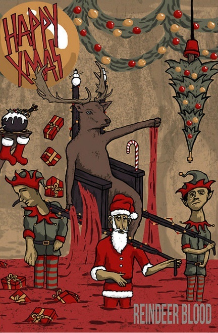 再说下死亡金属吧,印象中死亡金属关于圣诞的并不多,有个把的也是属于亵渎恶搞之类,不提也罢。但是13年11月29日,死亡金属版圣诞歌曲也出炉了,由HATE ETERNAL 贝司手 J.J. Hrubovcak 操刀改编。EP包括5首大家熟悉的圣诞金曲。